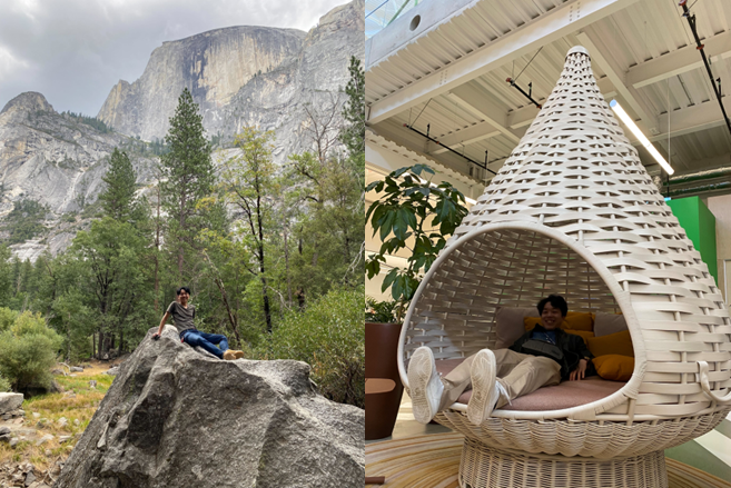 週末は毎週のように外に出かけ、全米一ともいわれる美しいスタンフォードのキャンパスやカリフォルニアの大自然を象徴するヨセミテ自然公園の観光、言わずと知れたメガIT企業Googleのオフィス、ベイエリアの起業家コミュニティといったシリコンバレーならではの施設にも足を運びました(Fig. 3)。また、下宿先から毎日自転車でキャンパスに通っていたのですが、スタンフォード周辺は熱すぎず寒すぎず、天気がよく、美しい庭を持つ家が立ち並び、小動物や鳥の声が絶えない場所で、研究で行き詰っている時も、登下校が気分転換になり毎日新鮮な気分にさせてくれました。総じて研究室の内外で充実した半年間を過ごすことができたと思います。